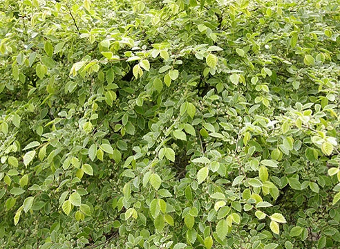 мНебольшое дерево до 15 м высотой с густой, округлой кроной и тонкими ветвями.Мелкие эллиптические листья до 2-7 см длиной, кожистые, слегка неравнобокие, с острой короткой вершиной и и зубчатым краем, гладкие. Весной листья светло зеленые с белым ободком на зубцах.; летом — светло -зеленые; осенью — оливково-желтые.